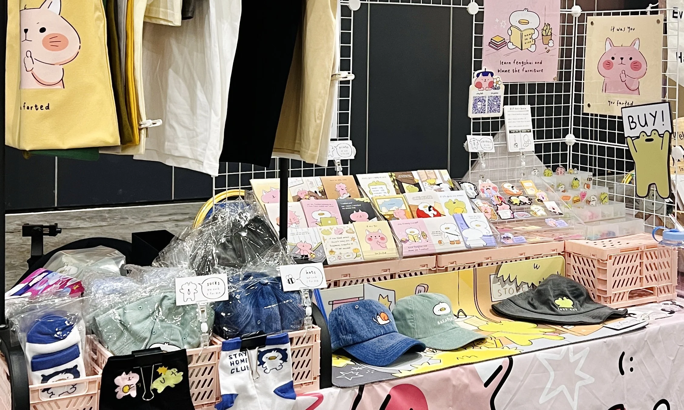 The table was much bigger than expected at 1.8m and like with many events, the tables were placed side by side and i was sandwiched between 2 tables. Therefore, my clothing rack ended up on top of the table 👀 Couldn’t tell if it was better or not, since it’s a little bit higher than eye level (for me as a short person).