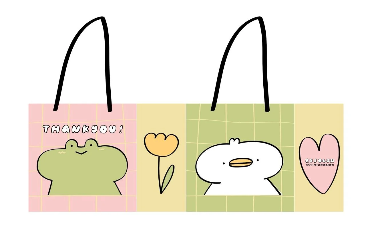 final design: merging my 2024 calendar design with all my characters, I made this 2 colour bag. I thought that it will look cute and people can carry the bag depending on which colour they like?